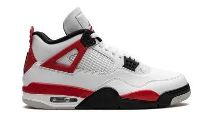 The Air Jordan 4 “Red Cement” is a colorway of the retro basketball shoe inspired by the Jordan 4’s iconic “White Cement” style. The “Red Cement’ Jordan 4 is designed similarly to the model’s original “White Cement” colorway, but with a few key differences. The “Red Cement” features red-based cement detailing while the “White Cement” has grey cement patterning. As for the rest of the design, the “Red Cement” Jordan 4 has a white leather upper with tonal leather overlays and white netting on the tongue and mid-panel. The black plastic eyelets are contrasted by Fire Red-based “wings” with a speckle pattern. The fiery red speckled pattern also appears on the shoe’s mudguard and heel counter. A black Jumpman can be found on the tongue and heel. Release date: September 9, 2023 Red Cement