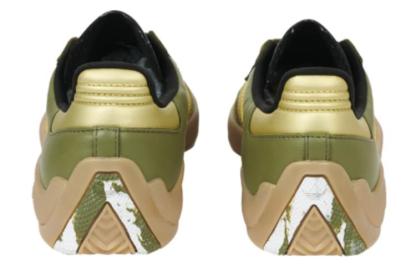- Full grain leather upper with gritty suede and gold foil details
