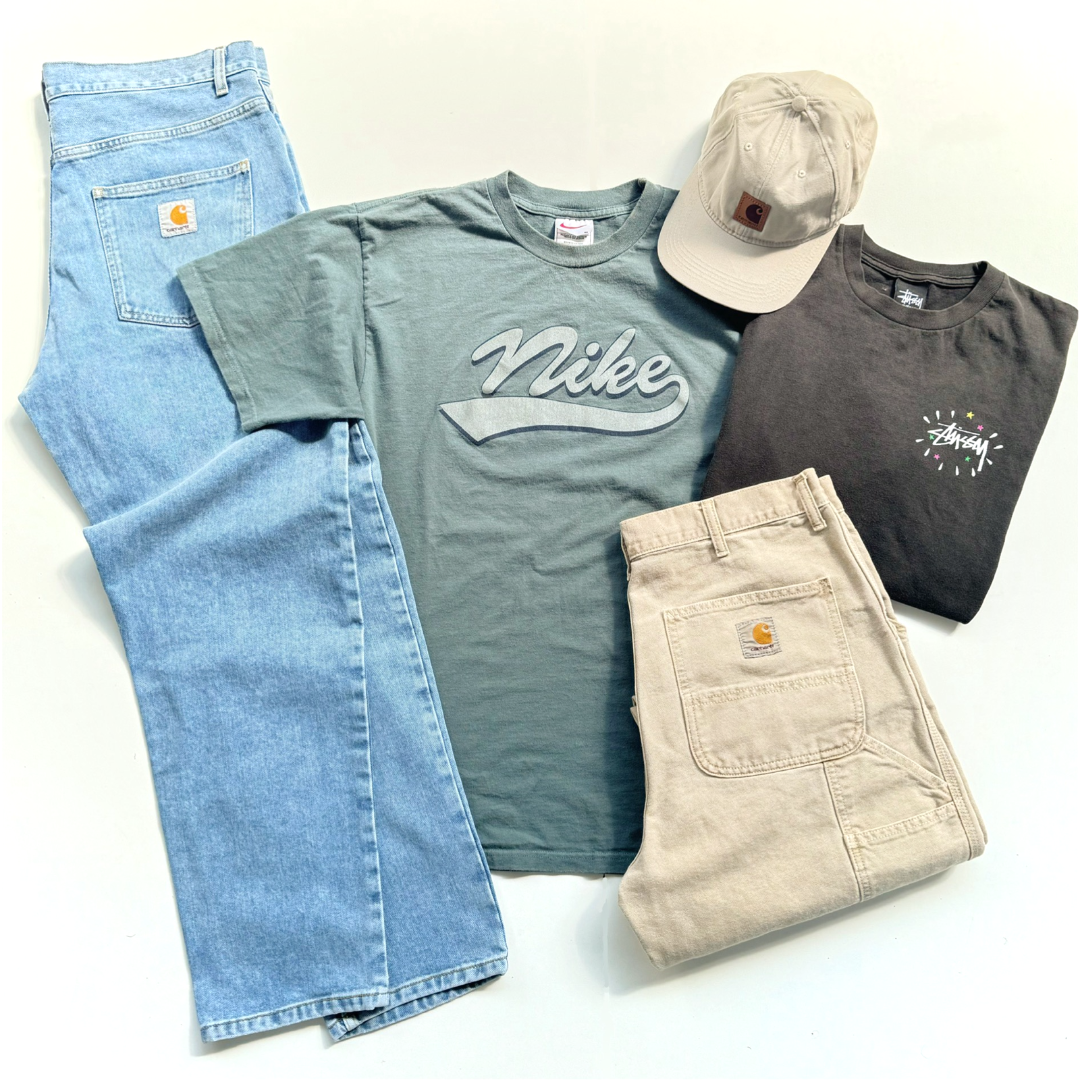 Each box contains a curated assortment of various vintage pieces from the 80’s, 90’s and 00’s. Sportswear, workwear, designer and loads more. Just pick your sizes and we’ll do the rest.